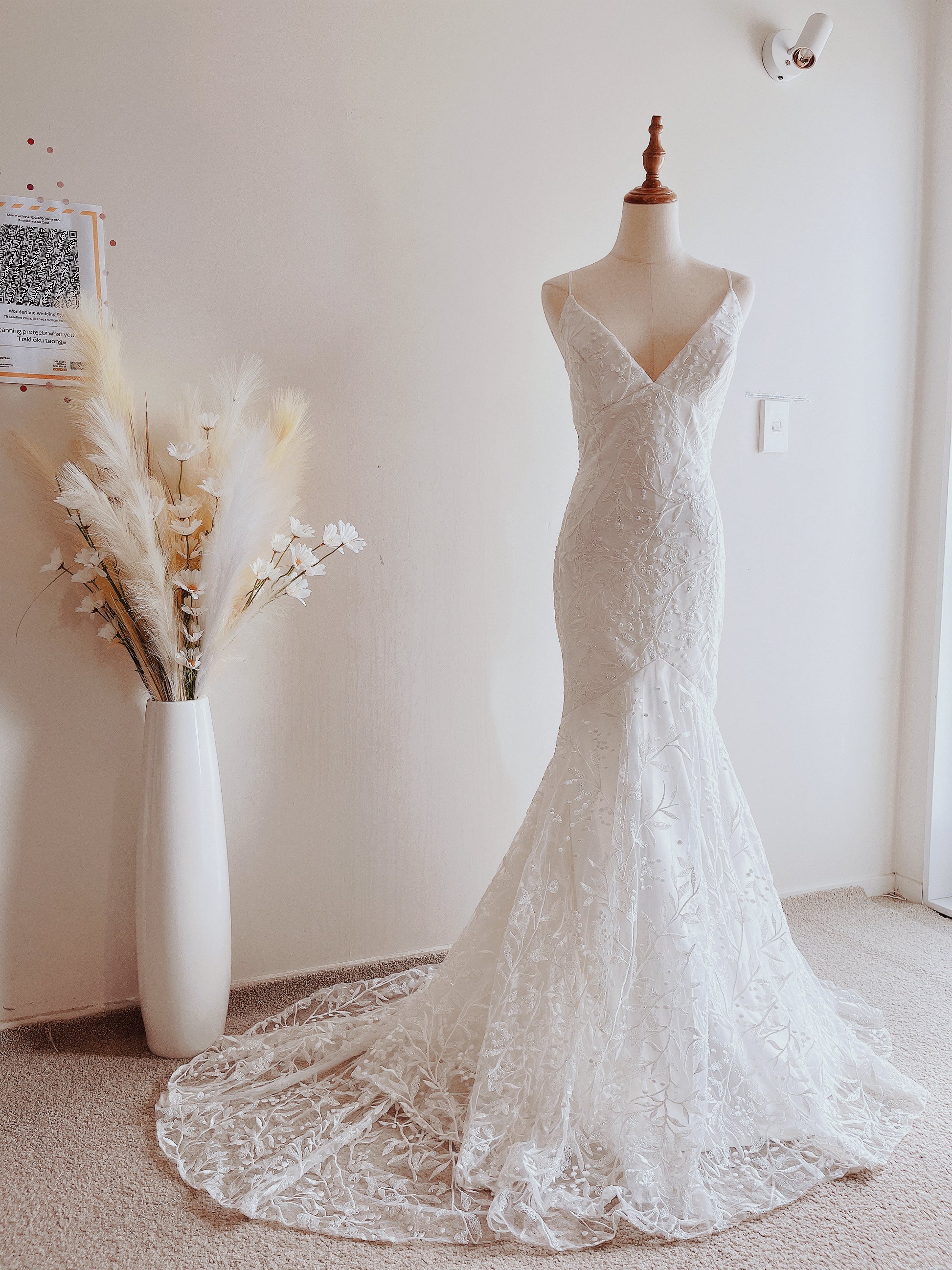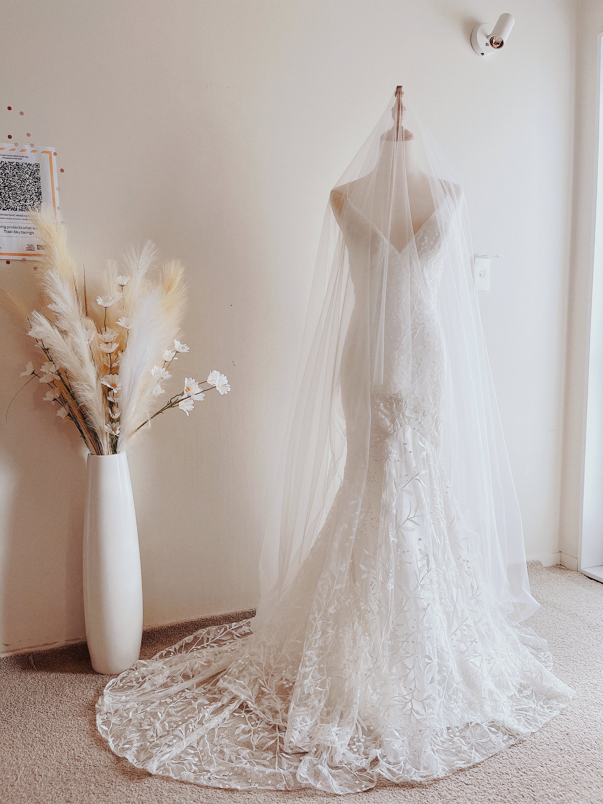 Please feel free to book an appointment via the Facebook page or text to +64 022 1969509 for people who would like to have a closer look or touch our product(s)'s quality, or even wanting to have your veil/wedding dress specially made.