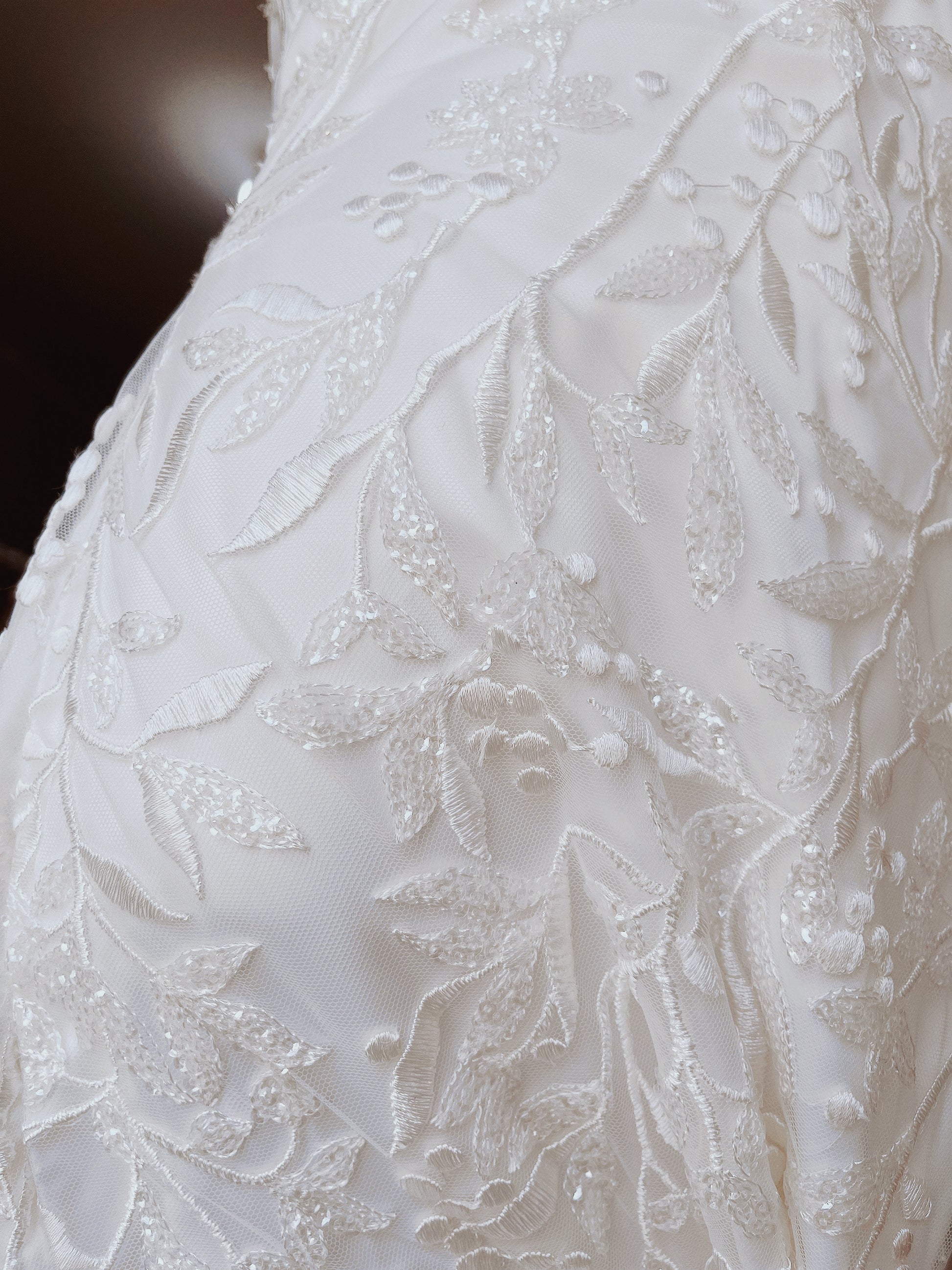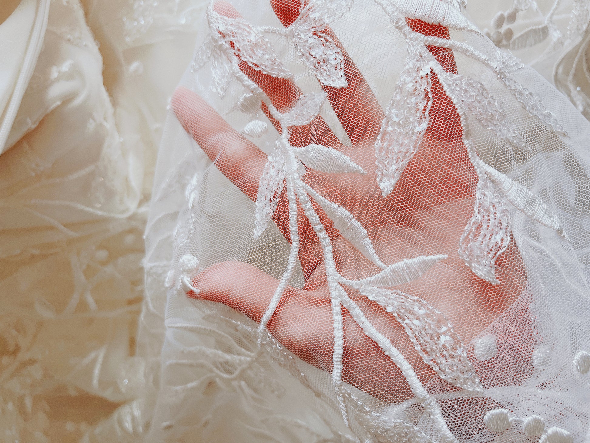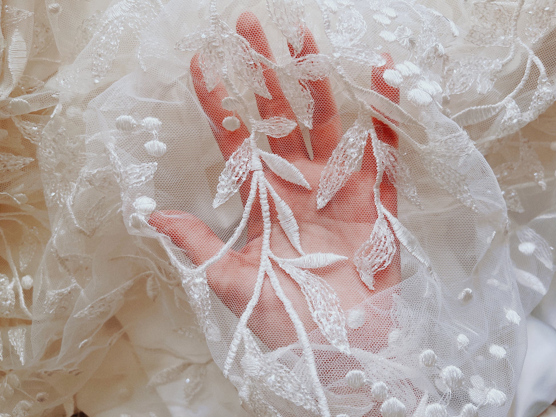-Beaded lace motifs over soft tulle